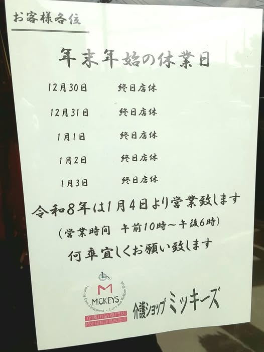 12月30日~1月3日まで年末年始を頂きます。どうぞ宜しくお願い致します。